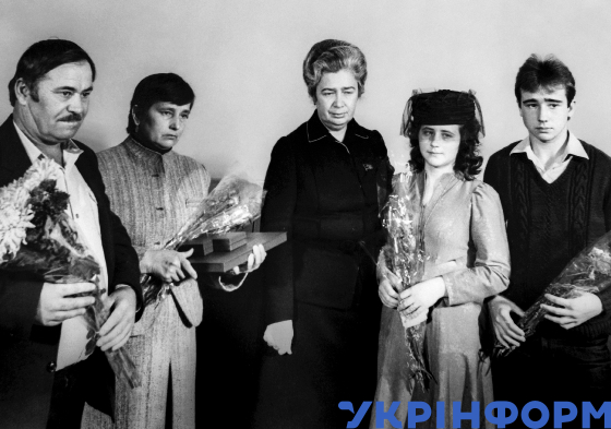 Голова Президії ВР УРСР Валентина Шевченко (третя праворуч) вручила родині Героя Радянського Союзу Віктора Кібенка орден Леніна і медаль "Золота зірка", Київ, 6 листопада 1986 року. Фото Юзефа Мосенжника і Володимира Самохоцького.