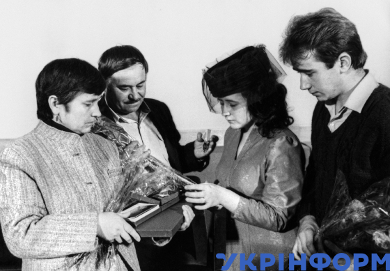 Родина героя-ліквідатора наслідків аварії на ЧАЕС Володимира Правика після вручення нагород, Київ, 6 листопада 1986 року. Фото Юзефа Мосенжника і Володимира Самохоцького.
