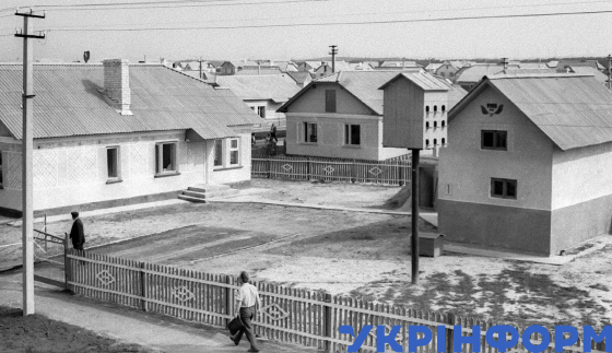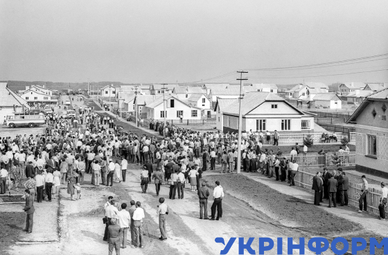Нове селище Тернопільське для переселенців із Чорнобильського району збудували в Макарівському районі, Київська область, 2 серпня 1986 року. Фото Юзефа Мосенжника.