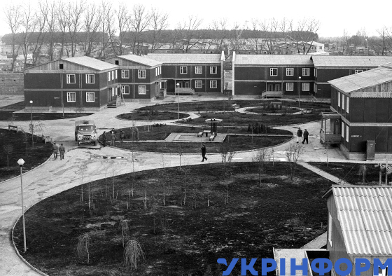 Вахтове селище Зелений Мис, збудоване для персоналу станції та ліквідаторів аварії на ЧАЕС, Київська область, жовтень 1986 року. Фото Анатолія Колесника та Юзефа Мосенжника.