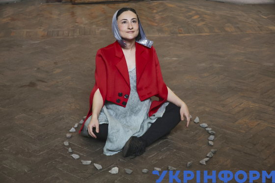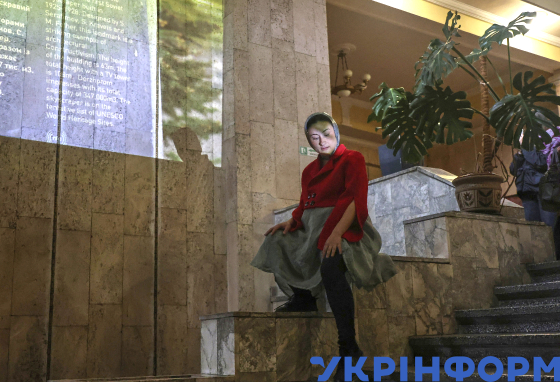 Хореографка Юлія Гришина під час танцювального site-specific перформансу "Тепло холодних стін" у будівлі Держпрому, Харків, 7 травня 2025 року.