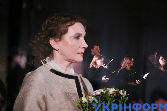 Провідна акторка Національного академічного драматичного театру імені Івана Франка, народна артистка України Наталія Сумська під час відкриття виставки “105 років – 105 вистав”, присвяченої найзнаковішим виставам, які сформували театр і визначали його стиль, у залі Національного академічного драматичного театру ім. Івана Франка, Київ, 25 березня 2025 року.
