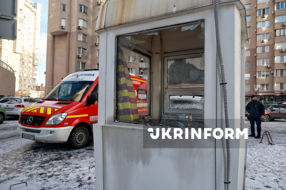 Понівечений внаслідок російського обстрілу БпЛА пост охорони на території житлового будинку, Одеса, 9 лютого 2026 року.