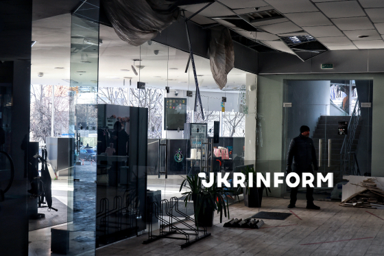 Понівечене внаслідок російського обстрілу БпЛА приміщення у житловому секторі Одеси, 9 лютого 2026 року.