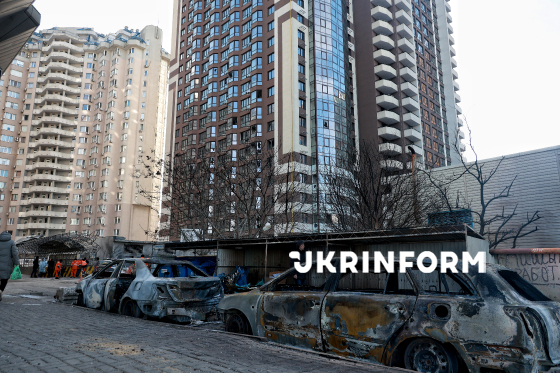 Згорілі внаслідок російського обстрілу БпЛА автомобілі у житловому секторі Одеси, 9 лютого 2026 року.