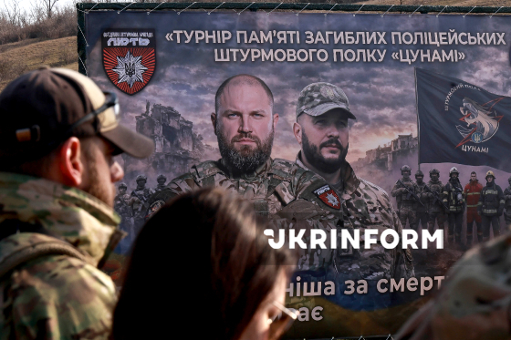 Банер демонструється в межах стрілецького турніру, присвяченого пам’яті полковника поліції, командира підрозділу Олександра Гостіщева, його заступника Дмитра Абраменка, а також усіх бійців штурмового полку "Цунамі" Об’єднаної штурмової бригади Національної поліції України "Лють", які загинули внаслідок російського балістичного удару по місту 15 березня 2024 року, Одеса, 16 березня 2026 року. Унаслідок подвійного ракетного удару балістикою 15 березня 2024 року загинула двадцять одна людина, серед них - командири та бійці штурмового полку "Цунамі" бригади Національної поліції "Лють".