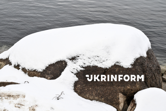 Камінь, вкритий снігом, на острові Хортиця, 2 січня 2026 року.