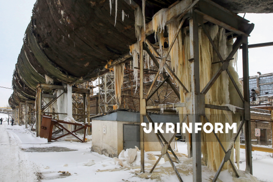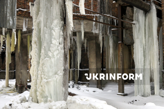 Брили льоду, намерзлі на конструкціях зруйнованої внаслідок російської балістичної атаки Київської ТЕЦ-4, у Дніпровському районі Києва, Київ, 6 лютого 2026 року. У ніч з 2 на 3 лютого війська РФ атакували теплове господарство Київської ТЕЦ-4 (Дарницької ТЕЦ) п`ятьма балістичними ракетами. Станція зазнала критичних руйнувань і була повністю зупинена. Без опалення та гарячої води за температури повітря -25°C залишилися 1129 житлових будинків Дніпровського та частини Дарницького районів, 46 шкіл, 72 дитячі садки, 18 медичних закладів та інші об`єкти соціальної і міської інфраструктури.