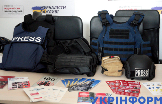 Броньований жилет з написом "Преса", фотокамера та захисна кевларова каска, Київ, 5 серпня 2024 року.
