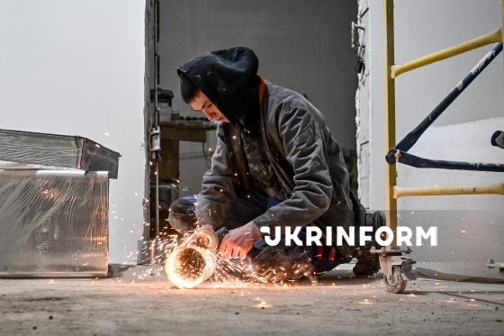 Будівельник працює на будівництві нового хірургічного корпусу Запорізької обласної дитячої лікарні, Запоріжжя, 19 лютого 2026 року. Саму будівлю вже зведено. Виконуються роботи з утеплення фасаду, а також внутрішні роботи. На спеціальному підземному поверсі буде укриття з повноцінною сучасною операційною та палатами інтенсивної терапії, на першому - приймальне та діагностичне відділення. На другому - хірургічне відділення на 25 ліжок, на третьому - три операційні та відділення інтенсивної терапії.