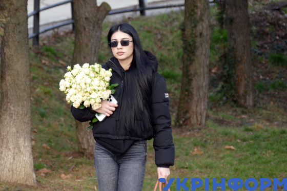 Дівчина несе букет троянд, Ужгород, 1 березня 2025 року.