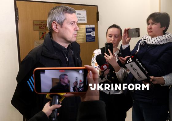 Адвокат Олександр Лисак спілкується зі ЗМІ після засідання Київського апеляційного суду з розгляду апеляції на ухвалу Печерського райсуду міста щодо продовження тримання під вартою до 14 грудня бізнесмена Ігоря Коломойського, Київ, 10 грудня 2025 року.