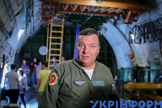 Командир екіпажу Дмитро Антонов у вантажному відсіку українського транспортного літака Ан-225 "Мрія", який повернувся з комерційного рейсу до Австралії, смт Гостомель, Київська область, 24 травня 2016 року. Фото Володимира Тарасова.
