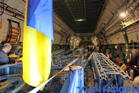 Прапор України у вантажному відсіку транспортного літака Ан-225 "Мрія", який повернувся з комерційного рейсу до Австралії, смт Гостомель, Київська область, 24 травня 2016 року. Фото Володимира Тарасова.