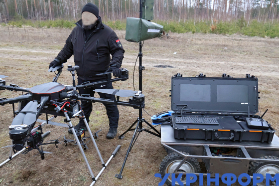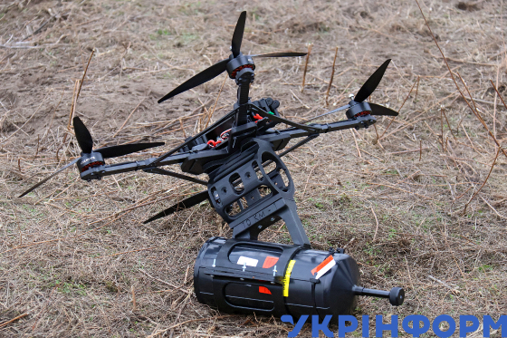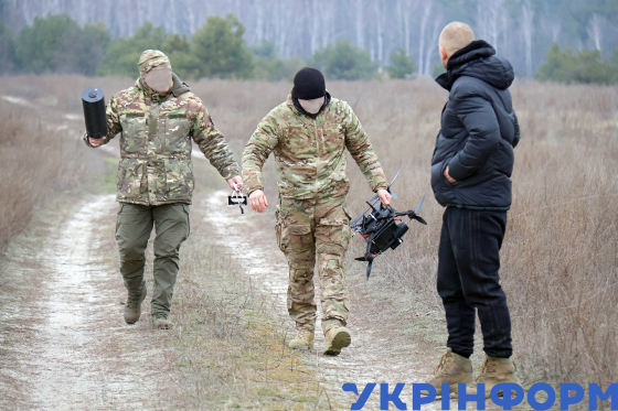 Журналістам демонструють FPV-дрон на оптоволокні у рамках відкритого тестування, Київська область, 29 січня 2025 року.