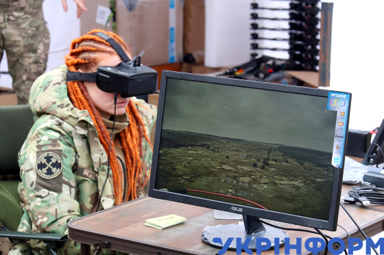 Керівниця курсу FPV-пілотування в навчальному центрі Dronarium Тетяна "Руда" під час демонстрації бойового використання волоконно-оптичної системи керування FPV-дронами, Київська область, 29 січня 2025 року.