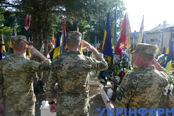 Військові віддають останню шану 43-річному водієві-електрику-мотористу 1 відділення мобільного звʼязку військової частини А7400 Олександру Луцю, який загинув під час виконання бойового завдання у листопаді 2025 року в районі населеного пункту Стецьківка Сумської області, під час церемонії прощання на площі Народній в Ужгороді, 30 березня 2026 року.