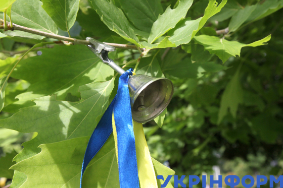 Символічний дзвіночок у руках дівчинки під час церемонії вшанування пам’яті дітей, які загинули внаслідок збройної агресії РФ проти України, у сквері Героїв, Дніпро, 4 червня 2025 року.