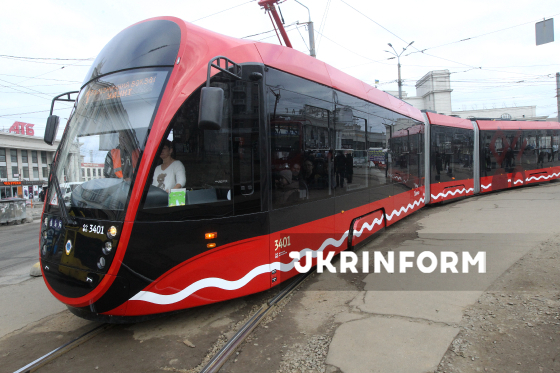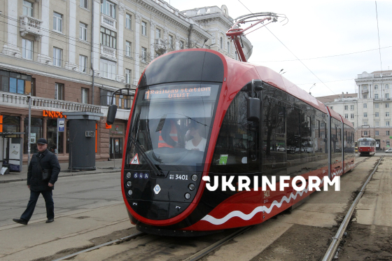 Новий низькопідлоговий трамвай курсує на маршруті №1, Дніпро, 4 березня 2026 року. Вагони обладнані відкидним пандусом, широкими проходами та місцями для крісел колісних. У салоні - звукові оповіщення, таблички зі шрифтом Брайля та кнопки сигналу водієві. Загалом місто закупило п’ять таких трамваїв.