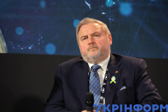 Депутат Європарламенту, віцеголова комітету з безпеки та оборони Ріго Террас під час дискусійної панелі “Космос як стратегічний ресурс та цивілізаційна ознака сучасної держави” на міжнародному форумі Space For Ukraine, організованому Міністерством оборони України, Київ, 29 березня 2025 року.