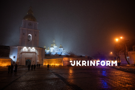 Свято-Михайлівський Золотоверхий монастир ввечері, Київ, 7 січня 2026 року.