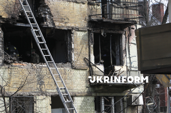 Обгорілі внаслідок влучання російського БпЛА квартири житлового будинку в одному з районів Дніпра, 26 березня 2026 року. Внаслідок атаки РФ спалахнули пожежі на другому та третьому поверхах багатоквартирного будинку. П`ятеро людей зазнали поранень.