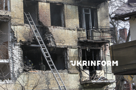 Рятувальник на пожежній драбині ліквідовує наслідки влучання російського БпЛА в будівлю Комунального некомерційного підприємства “Пологовий будинок №5”, Одеса, 28 березня 2026 року. У ніч проти 28 березня російський БпЛА вдарив по пологовому будинку №5, в якому перебували 22 новонароджені дитини, серед них – двійня з критично низькою масою тіла. Завдяки тому, що бомбосховище лікарні обладнане реанімацією для новонароджених, вдалося продовжити вентиляцію у бомбосховищі. Післяопераційних пацієнток перевели в палату інтенсивного нагляду у бомбосховищі. До приїзду рятувальників медики самостійно, за допомогою пожежних рукавів і вогнегасників, ліквідовували пожежі, які виникли в будівлі та на даху пологового. Внаслідок нічної атаки РФ на місто загинули двоє людей, постраждали 12 людей, серед яких – дев`ятирічний хлопчик.