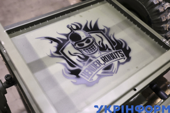 Емблема волонтерської групи “Bender.Robots”, яка займається розробкою і виготовленням дистанційно-керованої платформи для потреб Збройних сил України, Харків, 30 січня 2025 року.