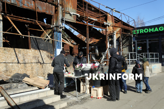 Містяни вибирають квіти, що продаються на одній з вулиць, Київ, 8 березня 2026 року.