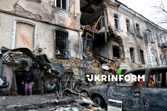 Зруйнований внаслідок російської атаки ударними БпЛА триповерховий будинок в Одесі, 19 березня 2026 року. У ніч на 19 березня російська армія вкотре обстріляла місто ударними дронами. Частково зруйновано дво- і триповерхові будинки, пошкоджено квартири у 21- та 25-поверхівках, понівечено понад 20 автомобілів. Внаслідок обстрілу постраждали четверо цивільних, двох із них – госпіталізували.