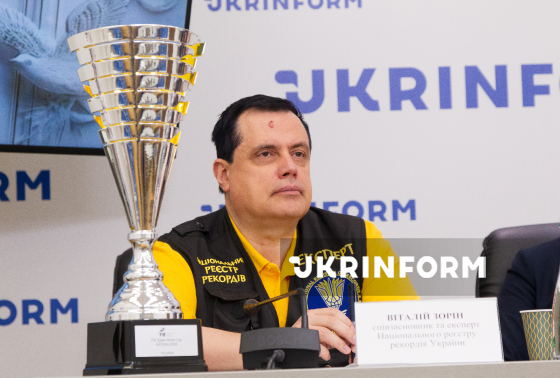 Експерт Національного реєстру рекордів України Віталій Зорін бере участь у пресконференції на тему: "Авторське право в мистецтві. Популяризація культурного надбання у світі" в Українському національному інформаційному агентстві "Укрінформ", Київ, 3 квітня 2026 року.