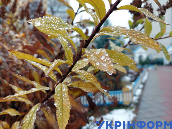 Краплі дощу на пожовклому листі, Вишневе, Київська область, 30 листопада 2024 року.