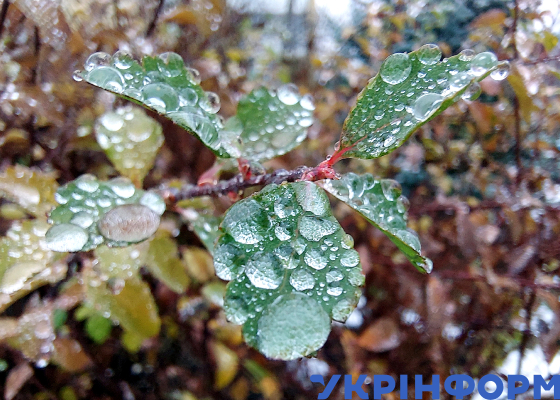Краплі дощу на зеленому листі, Вишневе, Київська область, 30 листопада 2024 року.