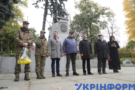Постійна Представниця Президента України в Автономній Республіці Крим Ольга Куришко, представник Крайової ради українців Криму Андрій Іванець, заступник міністра закордонних справ України Олександр Міщенко, президент історичного клубу “Холодний Яр” Роман Коваль, голова Українського інституту національної пам’яті Олександр Алфьоров і представники 3-ї бригади оперативного призначення ім. полковника Петра Болбочана “Спартан” НГУ (справа наліво) беруть участь у вшанування пам’яті військового діяча доби Української революції 1917-1921 років та командувача однієї з найуспішніших операцій Армії УНР — полковника Петра Болбочана, біля пам`ятника полковдцю на вулиці Січових Стрільців, 86, Київ, 17 жовтня 2025 року.