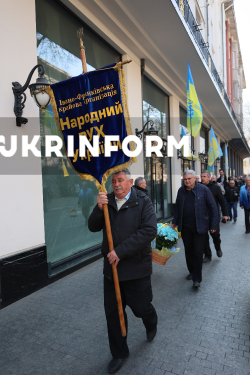 Учасники поминального віче, присвяченого 27-им роковинам загибелі українського національного лідера, голови Народного Руху України В`ячеслава Чорновола, йдуть вулицею Івано-Франківська, 25 березня 2026 року.