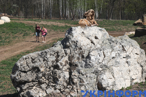 Відвідувачі на території Парку каменів, облаштованому у Фельдман Екопарку, Харківська область, 20 квітня 2025 року.
