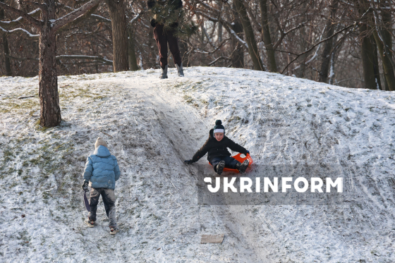Діти катаються на санках у Парку перемоги, Одеса, 15 січня 2026 року.