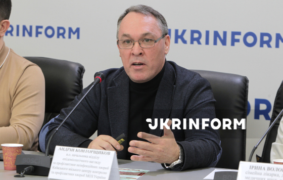 В.о. начальника відділу епідеміологічного нагляду та профілактики неінфекційних хвороб Київського міського центру контролю та профілактики хвороб МОЗ України Андрій Конторщиков бере участь у пресконференції на тему: "Загроза нових тютюнових та нікотинових виробів - представлення відкритого листа медичної спільноти", Київ, 8 грудня 2025 року.