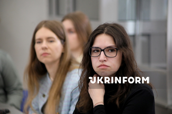 Парламентська аналітикиня Руху ЧЕСНО Софія Лазарова (праворуч) бере участь у презентації на тему: "Відкритий парламент: результати моніторингу прозорості комітетів Верховної Ради України IX скликання за 2025 рік", Київ, 17 лютого 2026 року.