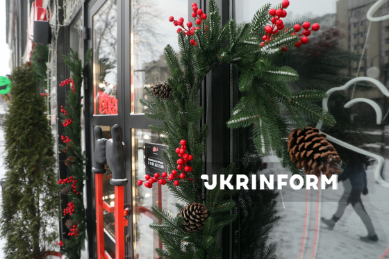 Святкове оформлення інтер’єру будівлі на Хрещатику, Київ, 2 січня 2026 року.