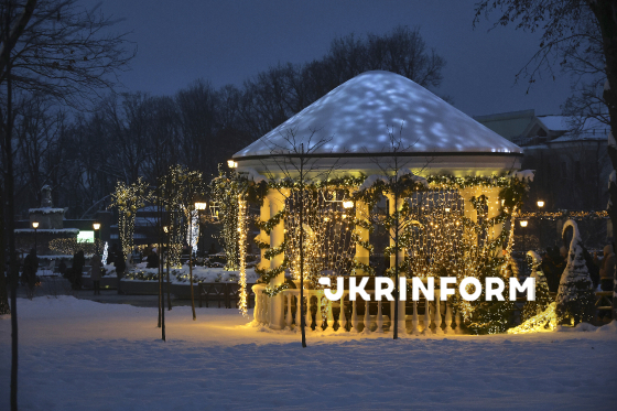 Святкова інсталяція, якою прикрасили місто до різдвяно-новорічних свят, Харків, 29 грудня 2025 року.