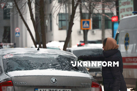 Жінка розчищає від льоду вікно автомобіля після крижаного дощу, Харків, 31 січня 2026 року.