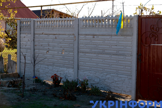 Пошкоджений внаслідок російських обстрілів паркан, село Посад-Покровське, Херсонська область, 7 листопада 2024 року.