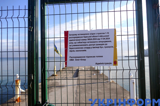 Загородження, що унеможливлює прохід на пірс, на одному із пляжів в районі курортної Аркадії, Одеса, 17 січня 2025 року.