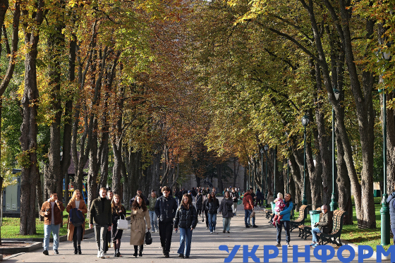 Містяни гуляють у саду імені Тараса Шевченка, Харків, 20 жовтня 2024 року.