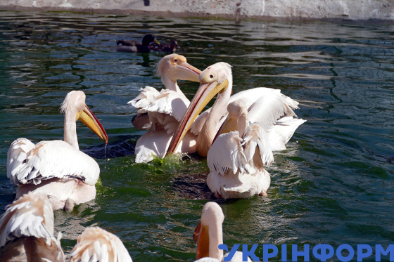 Пелікани у ставку Одеського зоопарку, Одеса, 27 березня 2022 року.