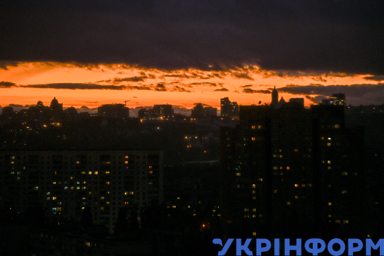 Захід сонця над столицею, Київ, 29 жовтня 2025 року.