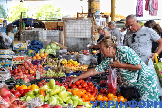 Люди біля прилавка на ринку "Привоз", Одеса, 10 липня 2025 року.