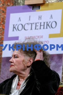 Видатна українська поетеса Ліна Костенко на презентації першого прозового роману "Записки українського самашедшого", надрукованого у видавництві "А-БА-БА-ГА-ЛА-МА-ГА", в Українському національному інформаційному агентстві "Укрінформ", Київ, 17 грудня 2010 року. Фото Олександра Космача.