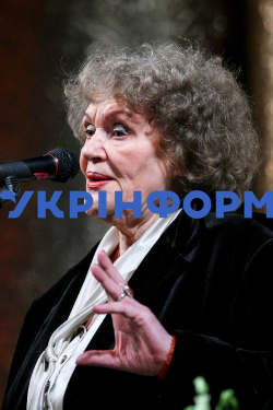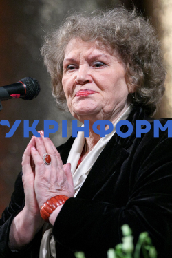 Видатна українська поетеса Ліна Костенко на сцені Національного академічного драматичного театру імені Івана Франка під час презентації свого прозового роману "Записки українського самашедшого", Київ, 31 січня 2011 року. Фото Олександра Космача.